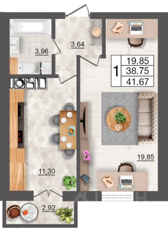 • Просторная кухня-гостиная с местом для обеденной зоны.