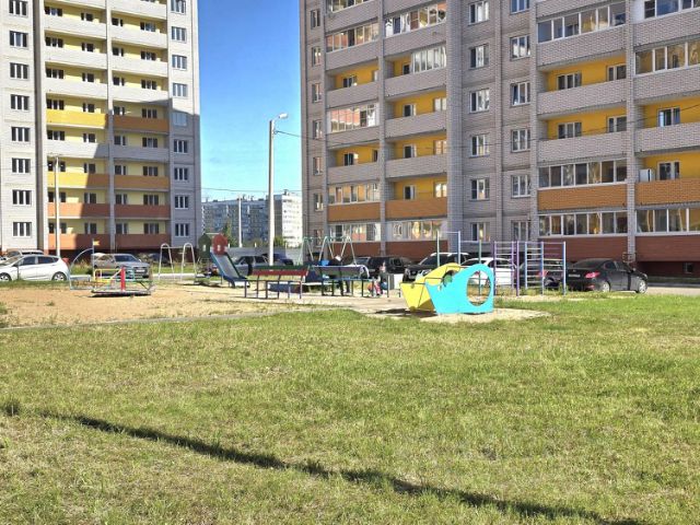 Благоустроенная придомовая территория, оборудованные современные детские площадки, большое количество парковочных мест.
