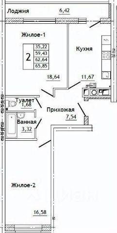Квартира 63 в кирпичном доме от застройщика