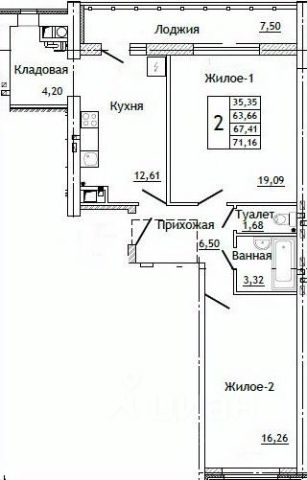 Имеется лоджия.