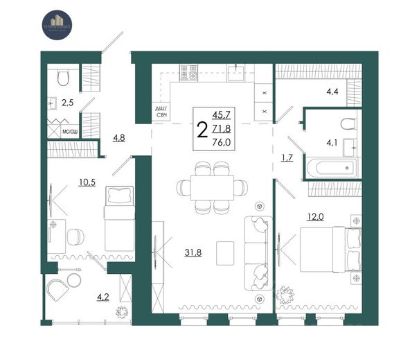 • ✅ Минимальная площадь: 52,7 м²