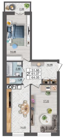 Продаётся 2-комнатная квартира в строящемся доме (дом 5 (секции 1,2)), срок сдачи: II-кв. 2027, общей площадью 60.67 кв.м., на 7 этаже. Расположение, транспортная доступность