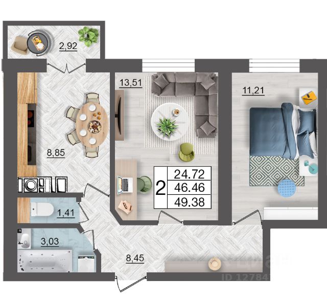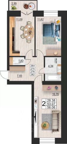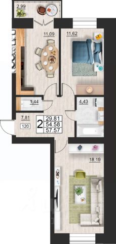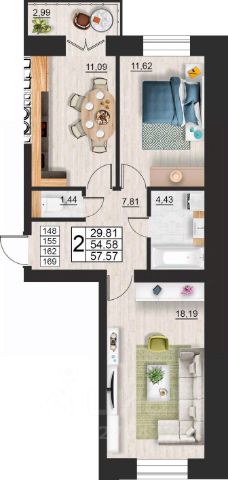 Продаётся 2-комнатная квартира в строящемся доме (дом 9 (секции 3,4)), срок сдачи: II-кв. 2027, общей площадью 64.22 кв.м., на 7 этаже. Расположение, транспортная доступность