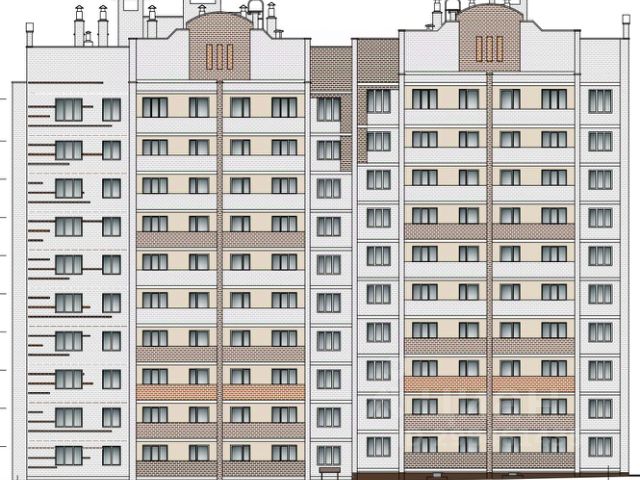 Дом 13 по Черняховского - 10 этажей, 108 квартир (54 однокомнатных и 54 двухкомнатных).