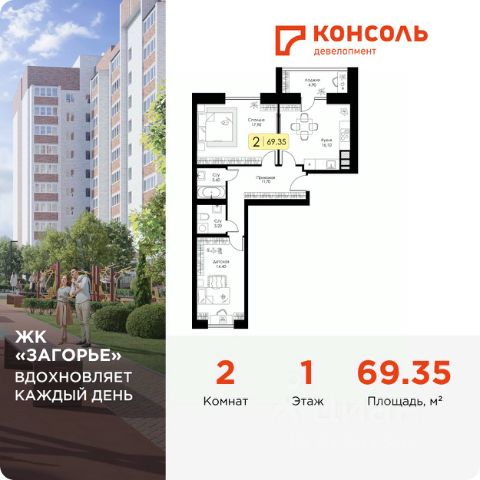 Продаётся 2-комнатная квартира в сданном доме (Краснинское ш., 28А (дом 4, сек. 2)), срок сдачи: II-кв. 2025, общей площадью 59.3 кв.м., на 9 этаже. Расположение, транспортная доступность