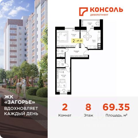Продаётся 2-комнатная квартира в строящемся доме (Корпус 2, блок-секции 1, 2), срок сдачи: II-кв. 2027, общей площадью 71.34 кв.м., на 10 этаже. Расположение, транспортная доступность