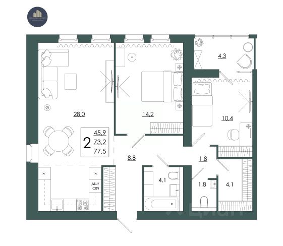 Продаётся 2-комнатная квартира в строящемся доме (дом 8 ), срок сдачи: III-кв. 2028, общей площадью 47.4 кв.м., на 10 этаже. Микрорайон "Соловьиная роща. Новый квартал" - новый масштабный проект АО "Ваш дом". Концепция микрорайона разработана с акцентом на детали. Здесь не только удобно и комфортно жить, заниматься спортом, отдыхать, но и получать эмоции и социализироваться. Высокое качество возводимого жилья и ответственность перед клиентами - основа философии компании "Ваш дом". Наша задача - находиться в постоянном диалоге с покупателем и развивающимся рынком. Каждый день мы стремимся оправдать ваш выбор в решении одной из самых важных жизненных задач - приобретение квартиры.Чистый воздух, тихие дворы с современными площадками для спорта и игр, развитая инфраструктура, детский сад, магазины, аптеки, фитнес-центры, уютные квартиры и современные инженерные решения.Каждый проект компании "Ваш дом" представляет собой тщательный выбор участка, детальную разработку генерального плана, подведение новых инженерных сетей.Для нас представление о комфорте не ограничивается рамками отдельной квартиры. На протяжении всей нашей деятельности мы всегда придерживались концепции строительства исключительно микрорайонов с полноценной инфраструктурой для жизни, а не отдельно стоящих домов. Архитектура Мы разработали новый, современный, яркий и выразительный формат жилья: лаконичная геометрия зданий, дизайнерские фасады домов. Перекликающиеся с фасадами оформление холлов и подъездов, высокие потолки, качественное осветительное и лифтовое оборудование. Отношение к местам общего пользования - холлам, лифтам - это показатель уровня дома. Здесь мы не скупимся на современные и оправданные решения. Атмосфера Всего пару шагов - и вы в чудесном и живописном парке "Соловьиная роща". Сейчас он является истинным местом для отдыха, занятий спортом, прогулоки романтических встреч. Уютная внутренняя территория микрорайона разделена на тихие зеленые дворы, часть из которых будет разработана согласно концепции "двор без машин". Акцент на озеленение и зонирование на активный и спокойный отдых. Комфорт Мы создаем планировки квартир, отталкиваясь от потребностей семьи, которая будет в ней жить. Планировки разрабатываем с учетом того, какие предметы современной домашней обстановки нужно предусмотреть и расставить на свои места: шкафы, диваны, стиральную машину и иную мебель. А в каждой кухне хватит пространства для всей семьи.