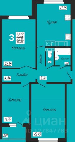 Очень светлая и уютная квартира с удачной планировкой на две стороны, просторной кухней гостиной 23 кв.м, тремя изолированными комнатами, раздельным санузлом, гардеробной и двумя лоджиями!
