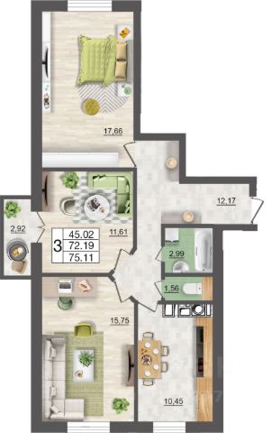 Продаётся 3-комнатная квартира в строящемся доме (дом 8 ), срок сдачи: III-кв. 2028, общей площадью 75.3 кв.м., на 2 этаже. Микрорайон "Соловьиная роща. Новый квартал" - новый масштабный проект АО "Ваш дом". Концепция микрорайона разработана с акцентом на детали. Здесь не только удобно и комфортно жить, заниматься спортом, отдыхать, но и получать эмоции и социализироваться. Высокое качество возводимого жилья и ответственность перед клиентами - основа философии компании "Ваш дом". Наша задача - находиться в постоянном диалоге с покупателем и развивающимся рынком. Каждый день мы стремимся оправдать ваш выбор в решении одной из самых важных жизненных задач - приобретение квартиры.Чистый воздух, тихие дворы с современными площадками для спорта и игр, развитая инфраструктура, детский сад, магазины, аптеки, фитнес-центры, уютные квартиры и современные инженерные решения.Каждый проект компании "Ваш дом" представляет собой тщательный выбор участка, детальную разработку генерального плана, подведение новых инженерных сетей.Для нас представление о комфорте не ограничивается рамками отдельной квартиры. На протяжении всей нашей деятельности мы всегда придерживались концепции строительства исключительно микрорайонов с полноценной инфраструктурой для жизни, а не отдельно стоящих домов. Архитектура Мы разработали новый, современный, яркий и выразительный формат жилья: лаконичная геометрия зданий, дизайнерские фасады домов. Перекликающиеся с фасадами оформление холлов и подъездов, высокие потолки, качественное осветительное и лифтовое оборудование. Отношение к местам общего пользования - холлам, лифтам - это показатель уровня дома. Здесь мы не скупимся на современные и оправданные решения. Атмосфера Всего пару шагов - и вы в чудесном и живописном парке "Соловьиная роща". Сейчас он является истинным местом для отдыха, занятий спортом, прогулоки романтических встреч. Уютная внутренняя территория микрорайона разделена на тихие зеленые дворы, часть из которых будет разработана согласно концепции "двор без машин". Акцент на озеленение и зонирование на активный и спокойный отдых. Комфорт Мы создаем планировки квартир, отталкиваясь от потребностей семьи, которая будет в ней жить. Планировки разрабатываем с учетом того, какие предметы современной домашней обстановки нужно предусмотреть и расставить на свои места: шкафы, диваны, стиральную машину и иную мебель. А в каждой кухне хватит пространства для всей семьи.