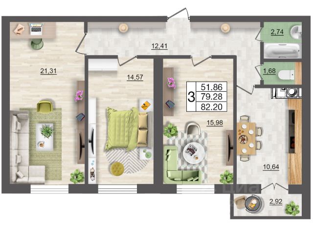 Продаётся 3-комнатная квартира в строящемся доме (дом 9 (секции 3,4)), срок сдачи: II-кв. 2027, общей площадью 82.68 кв.м., на 7 этаже. Расположение, транспортная доступность