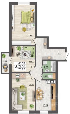 Продаётся 3-комнатная квартира в строящемся доме (секции 1-3), срок сдачи: III-кв. 2026, общей площадью 75.27 кв.м., на 2 этаже. Жилой комплекс "Максимум" - это новый уровень комфорта городской жизни Смоленска, сочетающий современные технологии строительства, качество исполнения работ и надежность застройщика - компании Гражданстрой. Эстетическое наслаждение от захватывающих дух видов, функциональность общественных пространств и прилегающей территории, удобство размещения объектов социального обслуживания на первом этаже дома и комфортный подземный паркинг - все это создает непередаваемое ощущение уюта и безмятежности. Комплекс возводится в престижном районе на ул. 25 Сентября в шаговой доступности от живописного парка 1100-летия Смоленска и, пожалуй, главного развлекательного "Макси" с его разнообразием магазинов, уютных кафе, кондитерских, салонов красоты, детских центров и кинотеатром. В радиусе 200 метров от ЖК "Максимум" расположены Гимназия 4, детские садики 37 "Ежик" и 67 "Виктория", остановки всех видов общественного транспорта в разные районы города - автобусов, троллейбусов, трамваев.