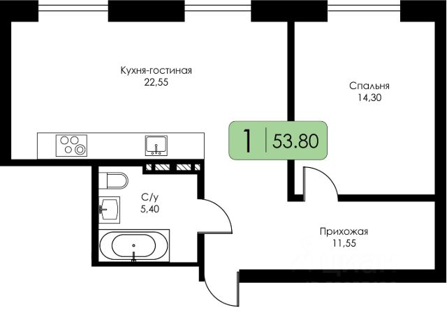 • ✓ В базе Циан 1 3-комнатных квартир в ЖК СреДА в Смоленске