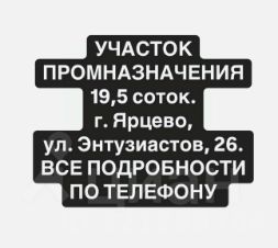 Местонахождение (адрес) площадки: РФ, Смоленская область, город Ярцево, ул. 1-Я Машиностроительная,1.