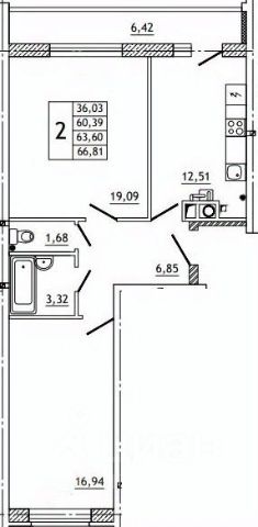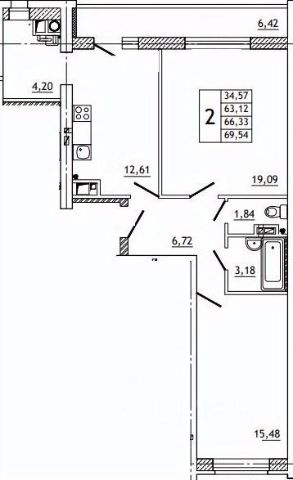 Квартира 74 в кирпичном доме от застройщика
