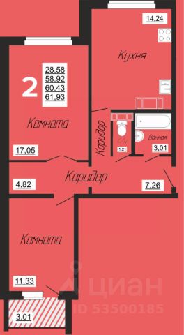 63 185 ₽/м²