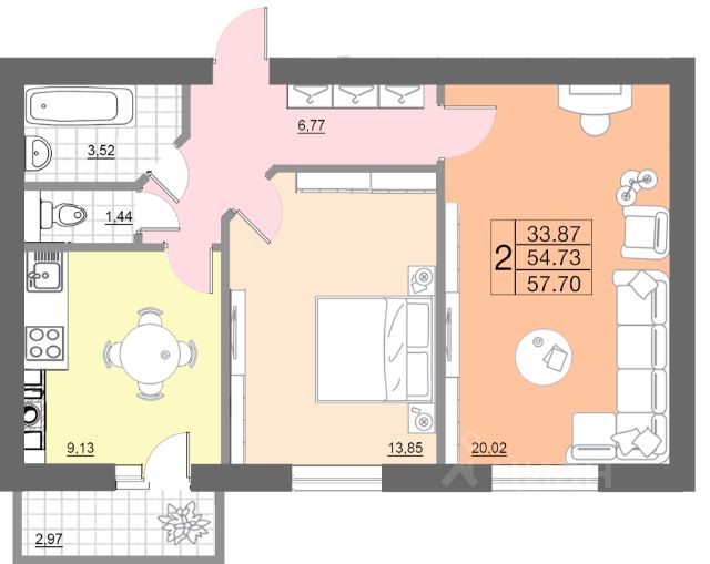 Продаётся 2-комнатная квартира в сданном доме (дом 1, секции 3,4), срок сдачи: I-кв. 2025, общей площадью 57.7 кв.м., на 10 этаже. Расположение, транспортная доступность