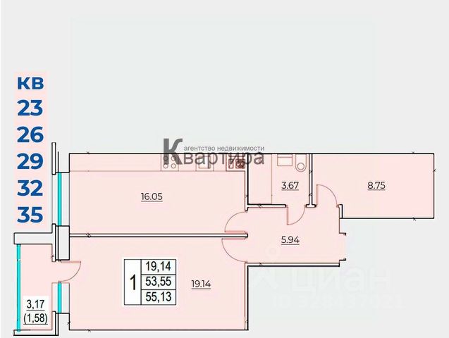 Продаётся 1-комнатная квартира в сданном доме (3-й Запольный, 8), срок сдачи: III-кв. 2024, общей площадью 43.5 кв.м., на 4 этаже.