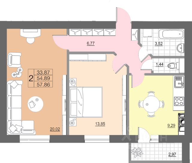 Продаётся 2-комнатная квартира в сданном доме (Краснинское ш., 32В (дом 1, сек. 1)), срок сдачи: IV-кв. 2024, общей площадью 58.3 кв.м., на 1 этаже. Расположение, транспортная доступность