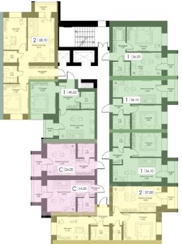Большая комната-24. 3 кв. м. , функциональная кухня 6 кв. м. , с/у раздельный, прихожая. В квартире высокие 3. 3 м потолки.