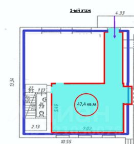 На 1-ом этаже помещение 47,4 кв.м.