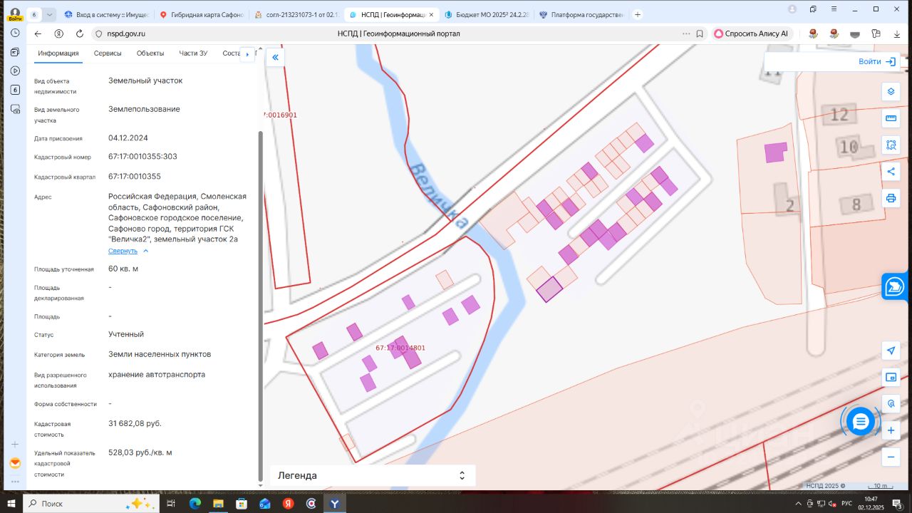 Земельный участок категории земель населенных пунктов с кадастровым номером 67:17:0010355:303 площадью 60 кв.метров, разрешенного использования хранение автотранспорта, расположенный по адресу: Российская Федерация, Смоленская область, Сафоновский район, Сафоновское городское поселение, г. Сафоново, территория ГСК " 2", земельный участок 2а.