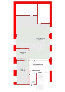Предложение для аренды включает в себя: Торговый зал 75 кв метров, 2 кабинета с дизайнерским ремонтом и эксклюзивной мебелью идеально подойдут под офис, есть возможность расширить площадь на 12 кв метров.