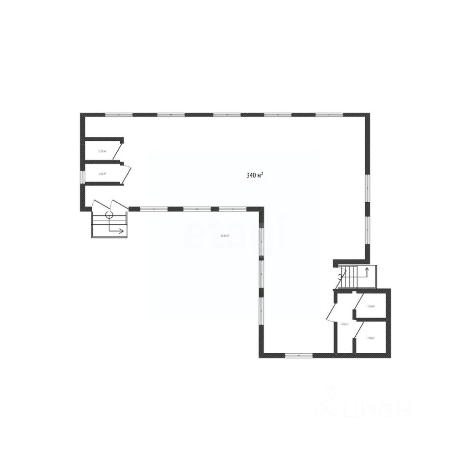 Сдаётся в аренду просторное помещение площадью 340 м² на третьем этаже трёхэтажного здания. Объект имеет два отдельных входа для клиентов и сотрудников, а также большую парковку.