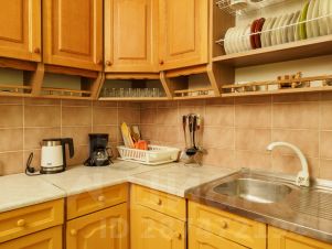 - Кухня оборудована современной мебелью и всей нужной для длительного проживания бытовой техникой. В распоряжении гостей квартиры полный комплект посуды и кухонной утвари, чтобы чувствовать себя как дома и готовить привычный рацион по своему вкусу;