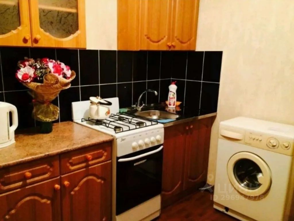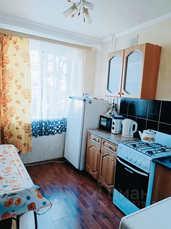 Диван, кресло раскладное, шкаф, кухонный гарнитур, стол, стулья.