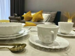 Апартаменты отремонтированы и оснащены мебелью и техникой. Предусмотрено три спальных места: две основных места и дополнительное место в виде раскладушки с матрасом. В распоряжении гостей собственная кухня со необходимыми принадлежностями для приготовления и приёма пищи, комплект посуды, обеденная зона, стиральная машина, фен, утюг, микроволновая печь, электрическая варочная поверхность, холодильник, кондиционер, гладильная доска, сушилка для белья. В апартаментах есть питьевая вода. Доступны бесплатный Wi-Fi и ЖК-телевизор с телевидением.