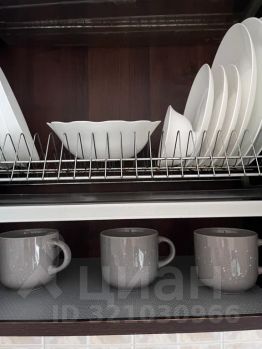 Кухня укомплектована посудой и встроенной бытовой техникой.