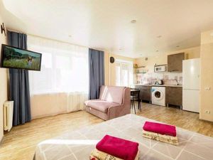 Предусмотрена большая двуспальная кровать и двуспальный диван. Есть ЖК-телевизор и безлимитный интернет. Компактная кухня оборудована современной мебелью и всей нужной для длительного проживания бытовой техникой. В распоряжении гостей квартиры полный комплект посуды и кухонной утвари на четыре персоны. Санузел в квартире совмещенный. Для курящих имеется балкон.