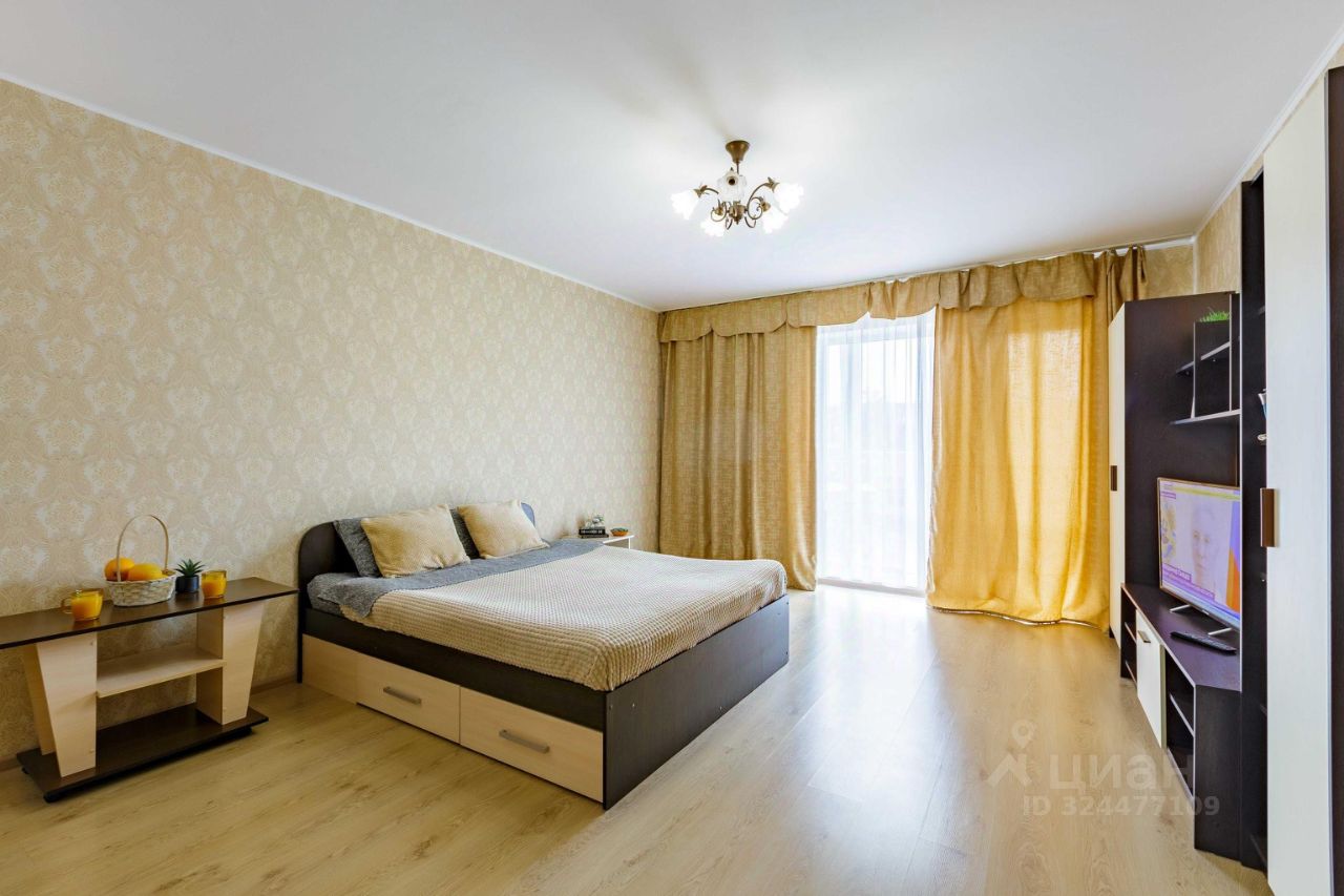 Просторная однокомнатная квартира с панорамными окнами, дом с закрытой территорией, бесплатная парковка. Квартира подходит для проживания 4х гостей.
