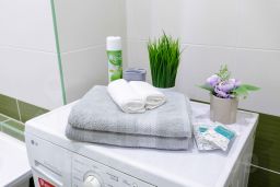 - ванная комната со стиральной машиной, феном, комплектами полотенец и туалетно-косметическими принадлежностями (шампунь, гель для душа, мыло для рук и тд.)