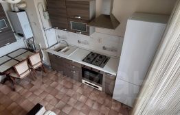 Встроенная кухня, холодильник, стиральная машина, микроволновая печь, выход на балкон из кухни. Также на кухне раскладной диван, как дополнительное спальное место.