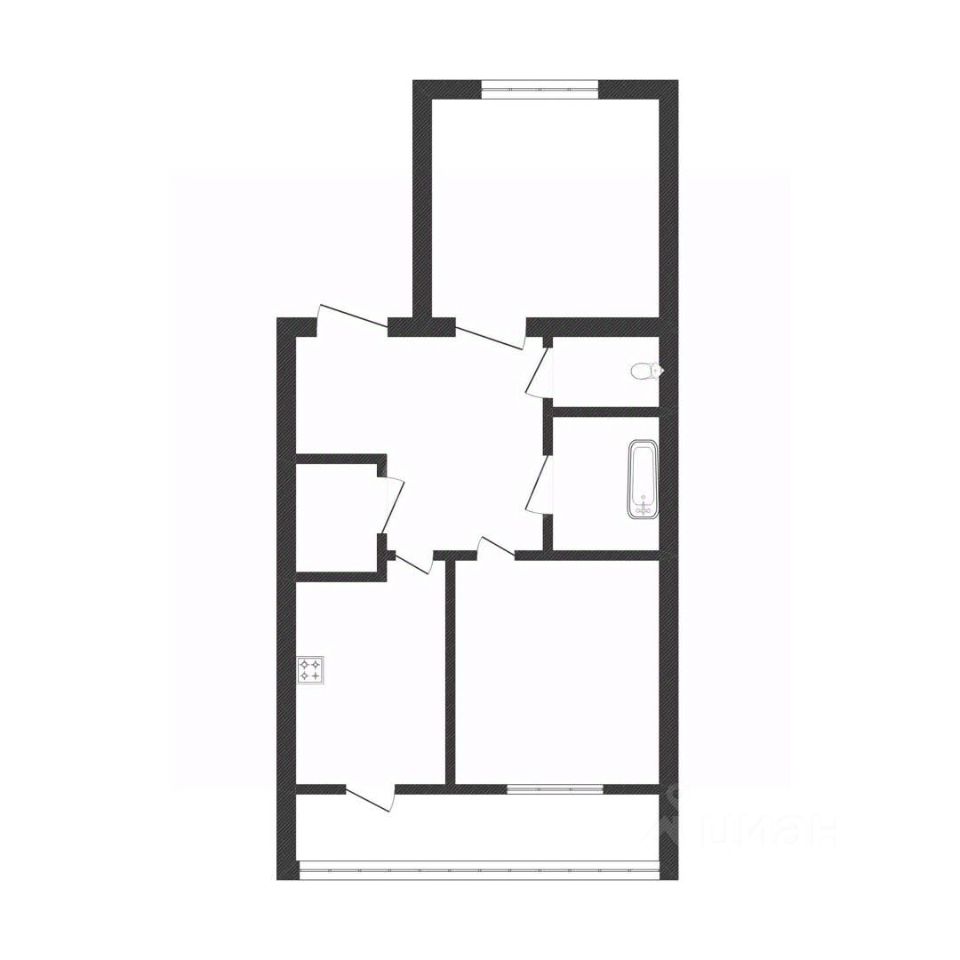 Две изолированных комнаты 19м2 и 15м2.
