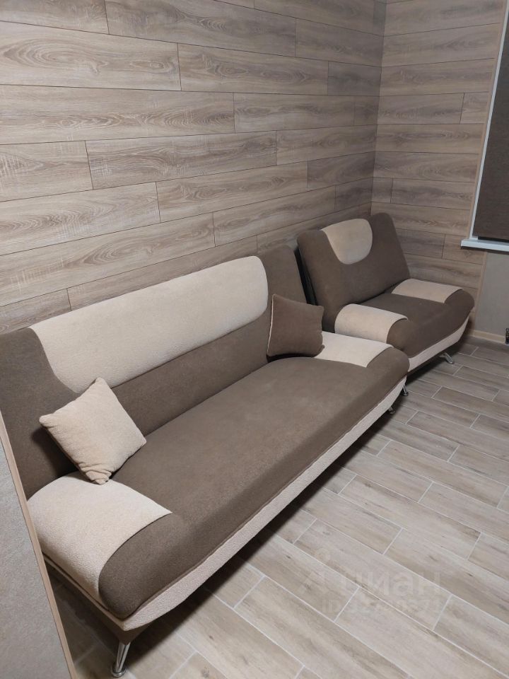 Современная мебель в комнате и на кухне, а также вся нужная техника: холодильник и стиральная машина. Просторная кухня площадью 10 кв. м.