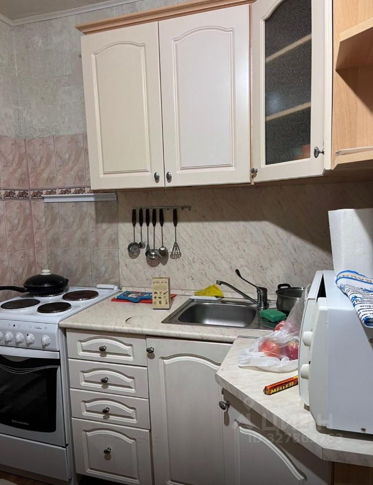 С бытовой техникой, посудой на кухне.