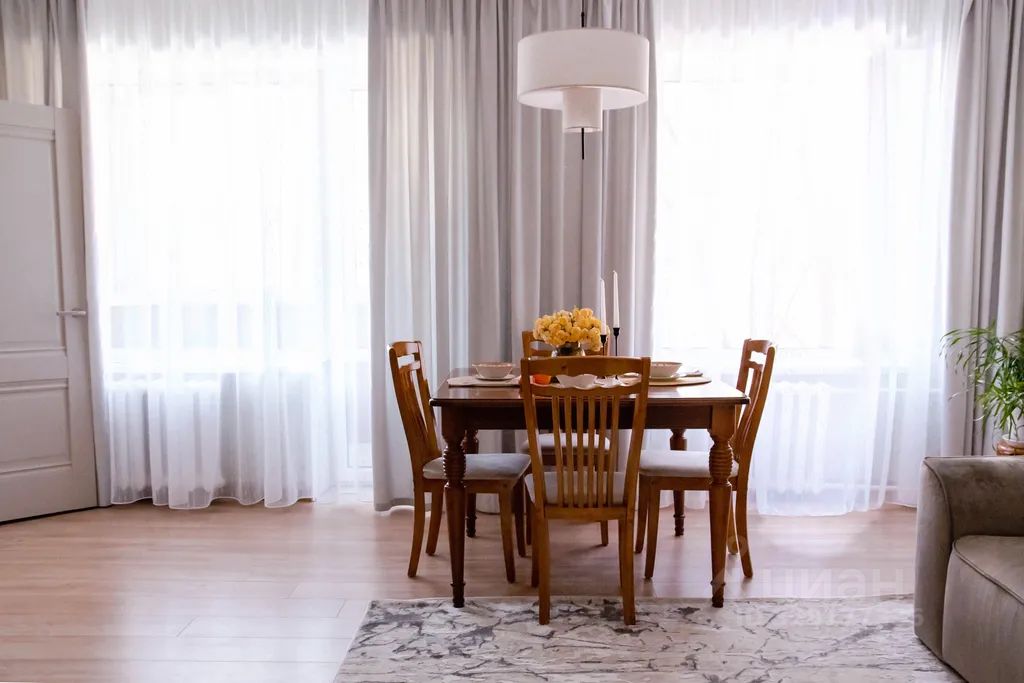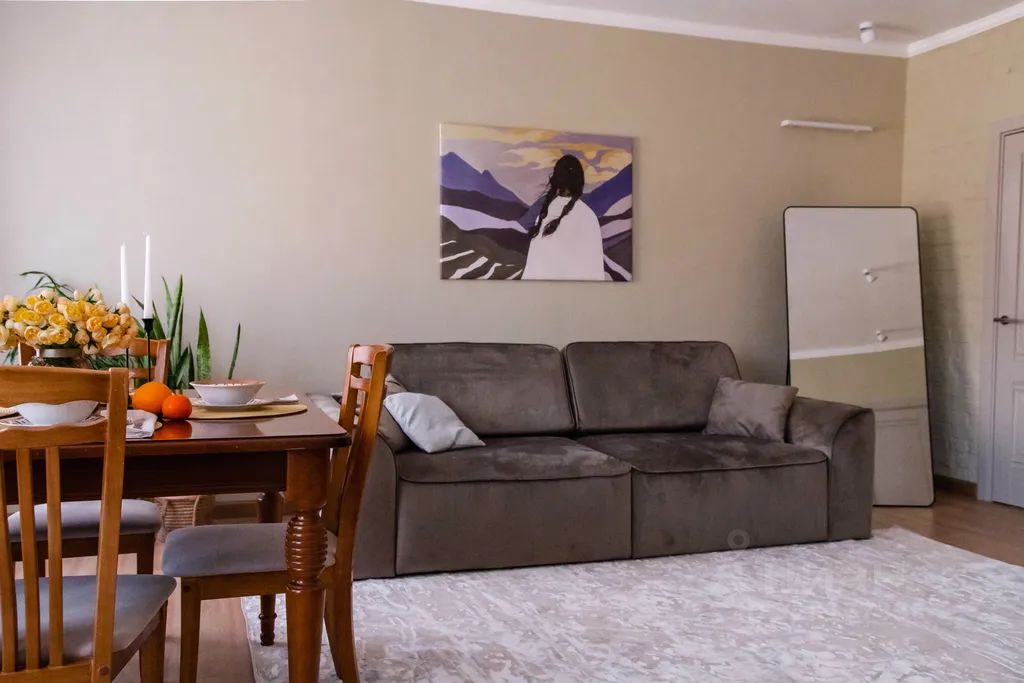 Комфортные условия для проживания и отдыха: уютная стильная гостиная со столовой зоной и большими окнами, отдельная спальня, оборудованная кухня