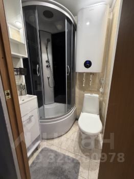 Современный санузел с душевой кабиной.