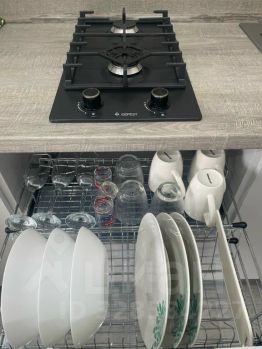 - полноценная кухня с обеденной зоной, оборудованная плитой, чайником, холодильником, СВЧ (микроволновая печь) и кухонными приборами ( тарелки, кружки, кастрюля, сковорода, столовые приборы)