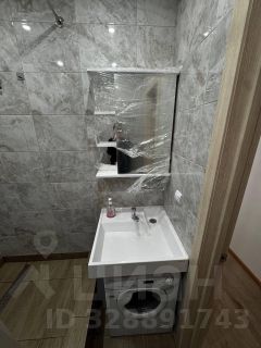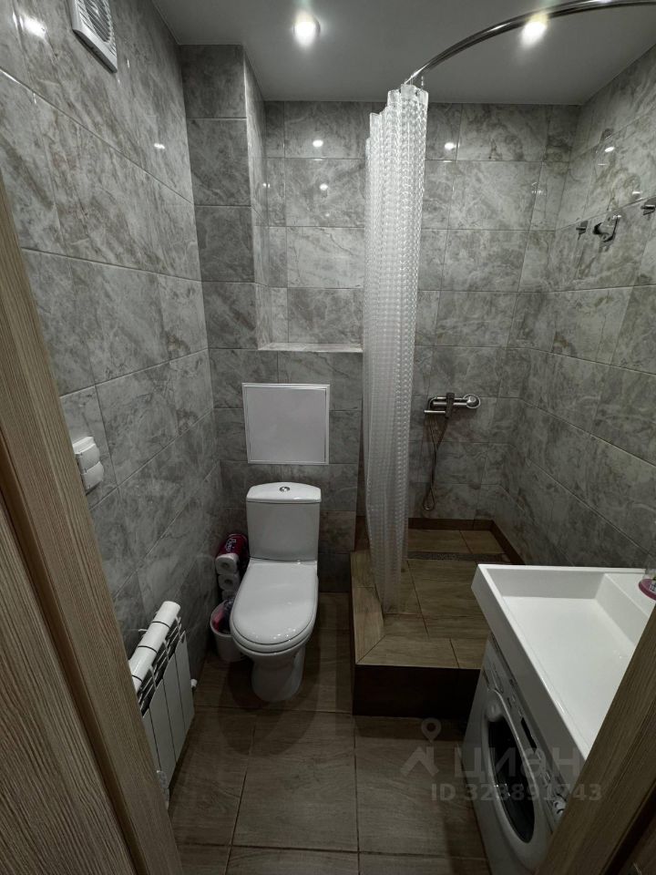 В комнате установлен вместительный шкаф и удобная кровать. Из мебели также имеется рабочая зона с письменным столом и стулом. Санузел совмещенный, оборудован современной сантехникой и стиральной машиной.