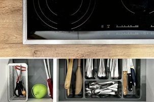 — холодильник, плита, микроволновка