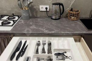 — оборудованная кухня и полный комплект посуды