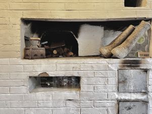 Оборудованная кухня, русская печка, все необходимые принадлежности (тарелки, ложки, кастрюли, стаканы, кружки)