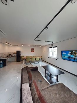 В доме 3 спальни с 2-х спальными кроватями. Просторная гостиная в которой находится кухня диваны телевизор с игровой консолью и стол расчитанный на большую компанию. Из куконных пренодлежностей посуда, плита, микроволноая печь, мини печь и холодильник. На территории настоящая русская баня в которой вы можете попарится с веником, можно так же поплавать в банном чане на 8 человек. Мангальная зона. Баня и чан оплачиваются отдельно. Цену за аренду дома в праздничные дни уточняйте. Дом расчитан на 6 человек, более 6 доплата. Принимаем гостей от 23-х лет.