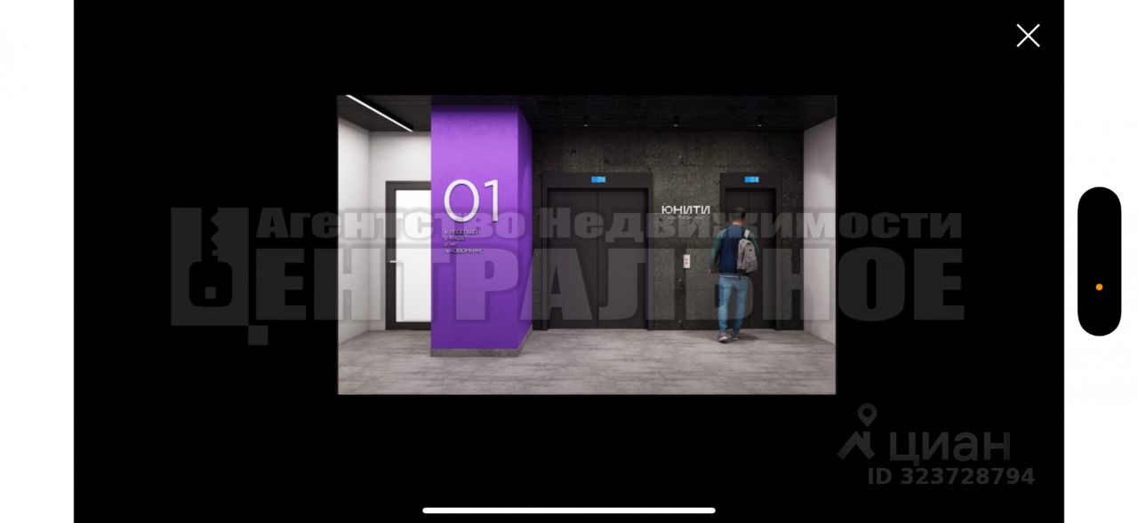 Помещение находится на 9 этаже комплекса с прекрасным видом на стадион, и имеет площадь 23 кв.м.