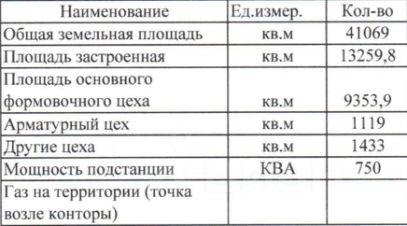 В комплексе есть административное здание трех этажное, арматурный цех, общий цех. Разбивка по площади на фото. Административное здание примерно 1350 м2, его нет в списке