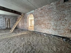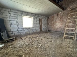 - земельный участок 12 соток в собственности, здание оформлено как недострой со степенью готовностью 68%;
