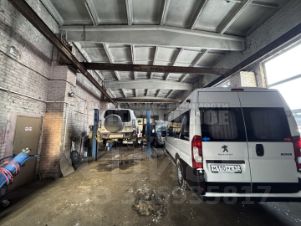 Помещение сейчас используется под автосервис. Две смотровые ямы, два подъемника, два въезда/т выезда. Ворота распашные. Есть газ (индивидуальное отопление), вода городская, энергия 30 квт.